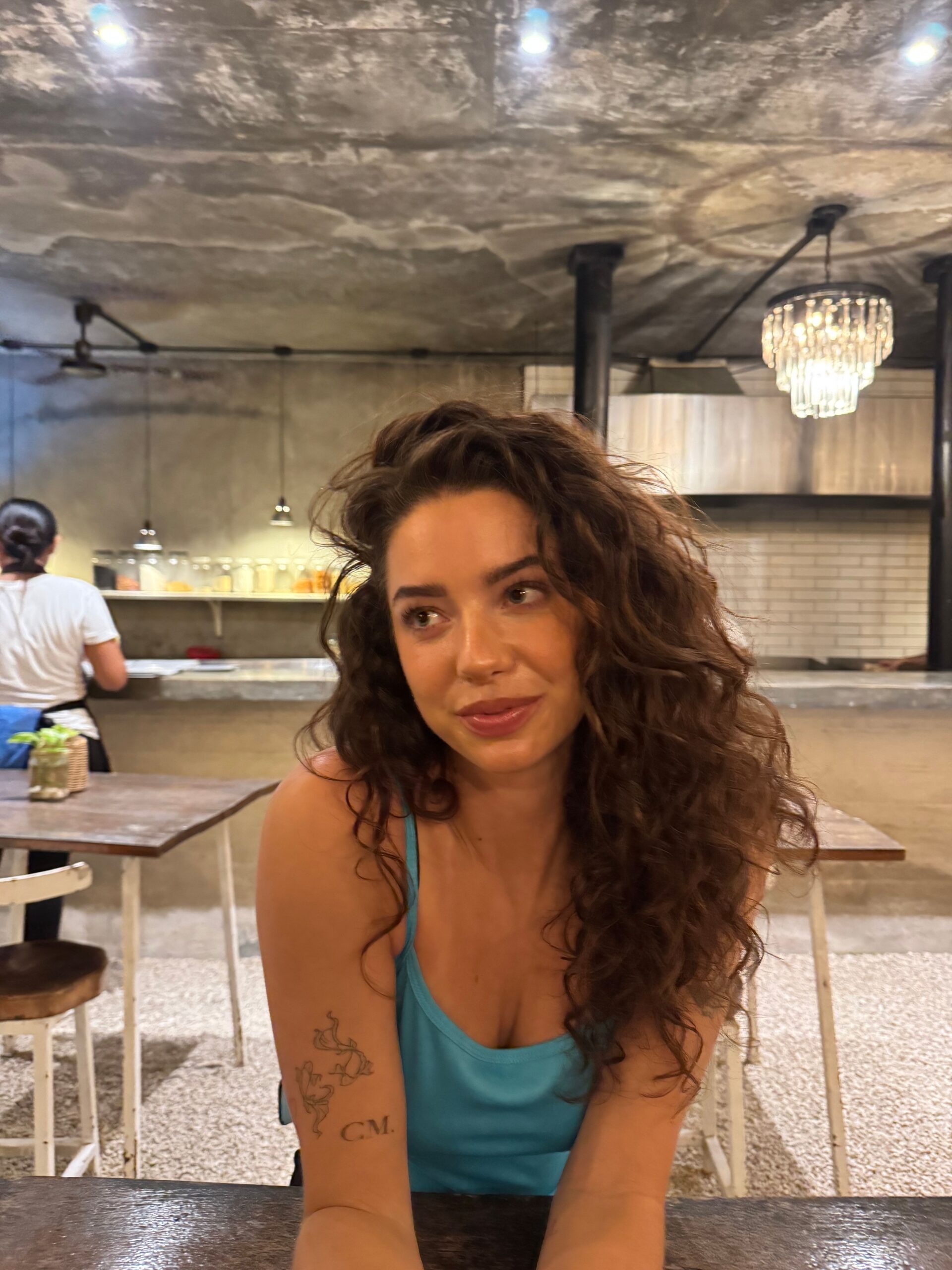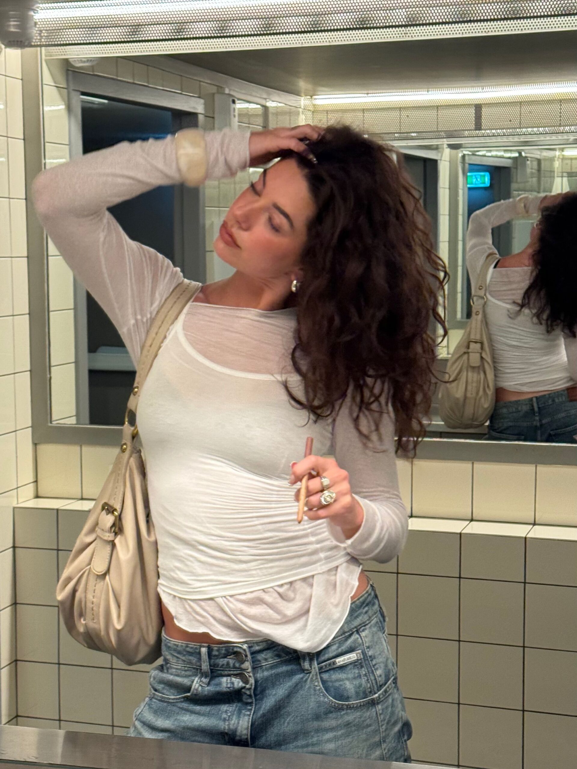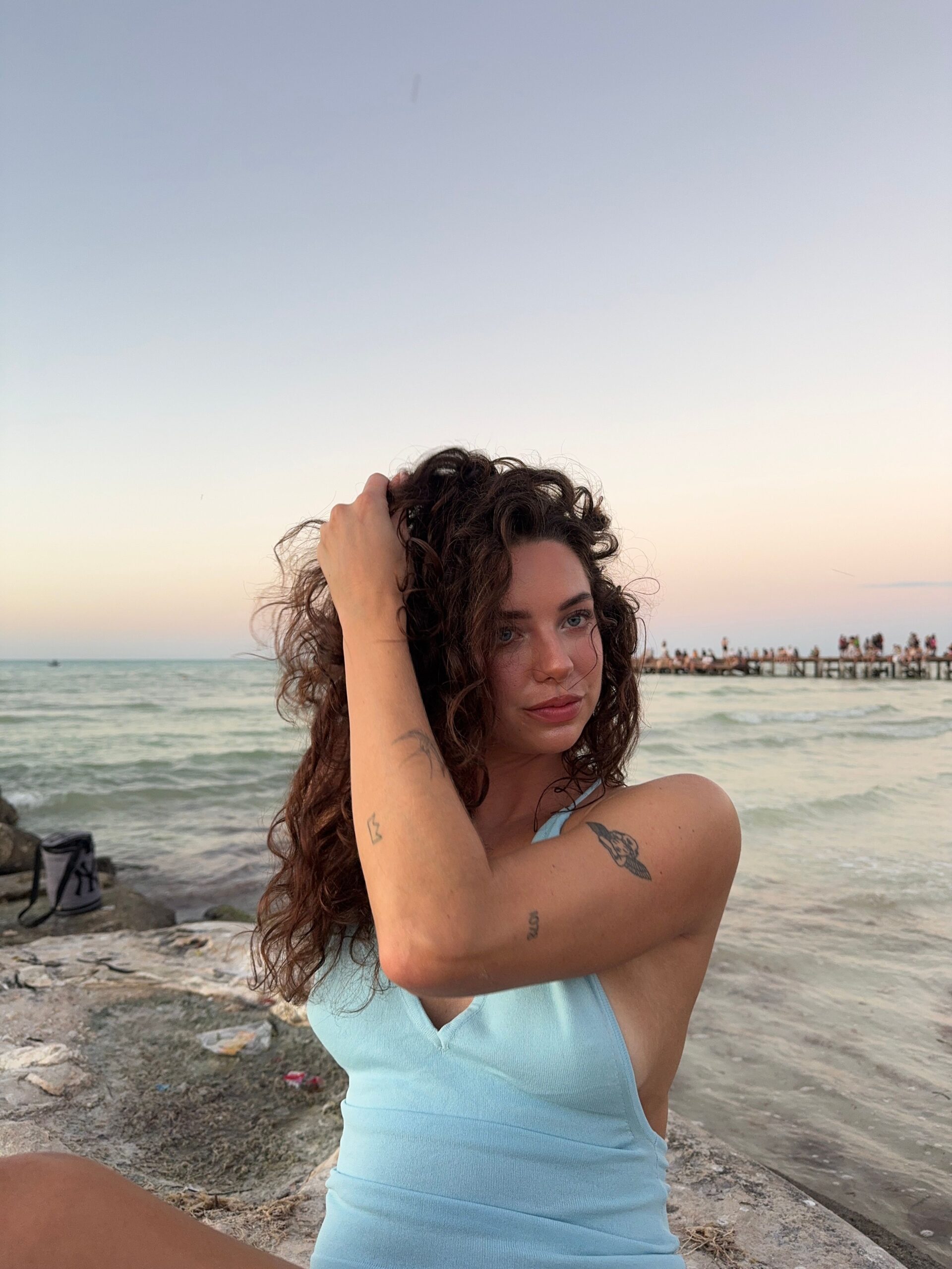 “Ik wist altijd al dat er iets van krul potentie in mijn haar zat, alleen föhnde ik dit er altijd direct uit na het douchen. Vorig jaar ben ik voor 2 maanden naar Thailand gegaan en wist ik dat er geen plek was voor een föhn of stijltang in de rugzak. Op dat moment ginger een product viraal op TikTok; de leave in crème van Skala. Ik dacht, toch maar eens uitproberen! Het resultaat was iets dat ik nooit had durven dromen: een bos met krullen! Zo doende heb ik heel de reis mijn krullen omarmd en werd het een beetje mijn “vakantie look”. Iedere vakantie kwamen de krullen weer naar voren. Nu ik me volledig focus op lange gezonde lokken merk ik dat ik ook steeds vaker “niet op vakantie”, ook de krullen behoud. Wat ik eerst altijd zag als pluizig haar, ben ik nu gaan zien als iets waar heel veel mogelijk mee is & wat helemaal niet moeilijk is om mee om te gaan! Samen met mijn kapster (Charlie van Frame Amsterdam) heb ik een plan gemaakt om het zo gezond mogelijk lang te laten worden, waar ik het dus ook iedere 8 weken een beetje laat knippen. On to healthy hair!”
